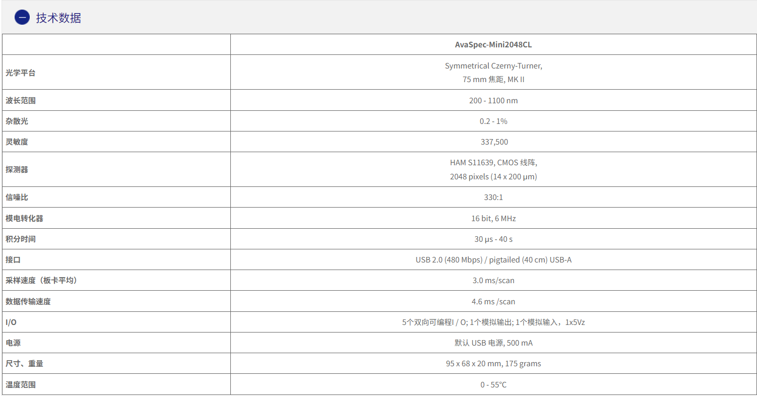 Mini-CL系列可配備2048像素CMOS探測器和4096像素陣列。 采用CMOS探測器,具有UV / NIR響應(yīng),達(dá)到0.09 nm的分辨率。 低雜散光設(shè)計允許雜散光水平低至0.2%,快速響應(yīng)時間的數(shù)據(jù)傳輸速度高達(dá)4.6 ms /掃描,積分時間范圍為30μs至50 s。